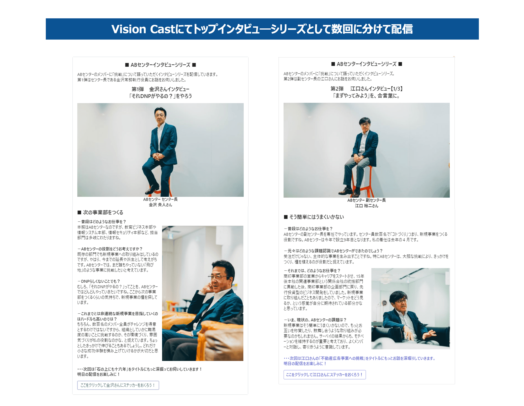 ――全社にメッセージを配信できる「Vision Cast」機能を使って、金沢さん、江口さんのインタビュー記事を配信した際の反響は?