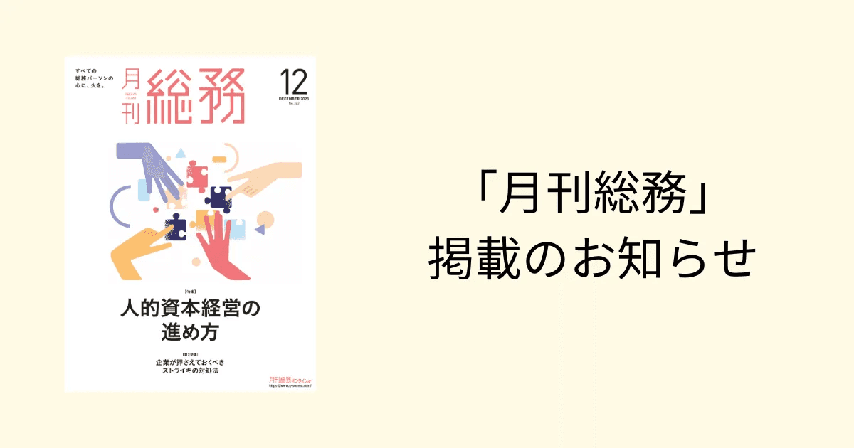総務・人事に特化した情報をお届けする、日本唯一の総務専門誌「月刊総務 12月号 」(2023年11月8日発売)の「今月のイイネ!」コーナーに、TeamSticker(チームステッカー)が掲載されました。