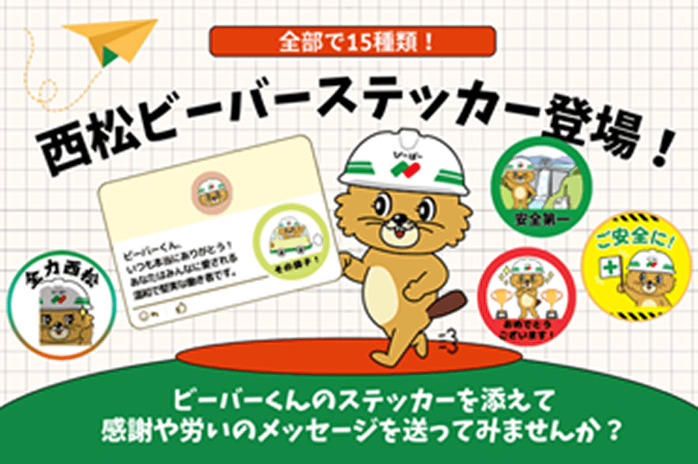 今回のトライアルでは、西松建設のマスコットキャラクター「西松ビーバー」を活用したオリジナルステッカーを制作。さらに社員インタビューの社内配信など、職場に温かいコミュニケーションを生み出す工夫も行っています。トライアルによる効果を検証し、全社導入に向けた検討をしたいと考えています。