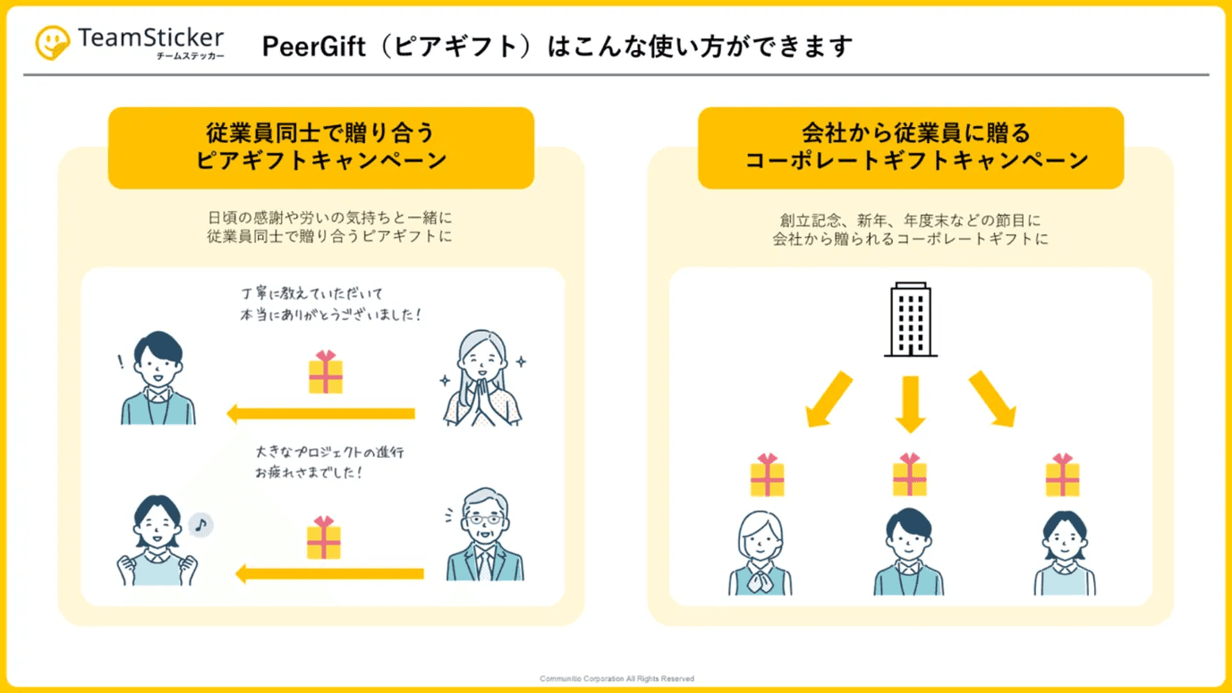 従業員同士でデジタルギフトを贈りあえるピアギフトに続き、新サービス「コーポレートギフト」が登場しました。