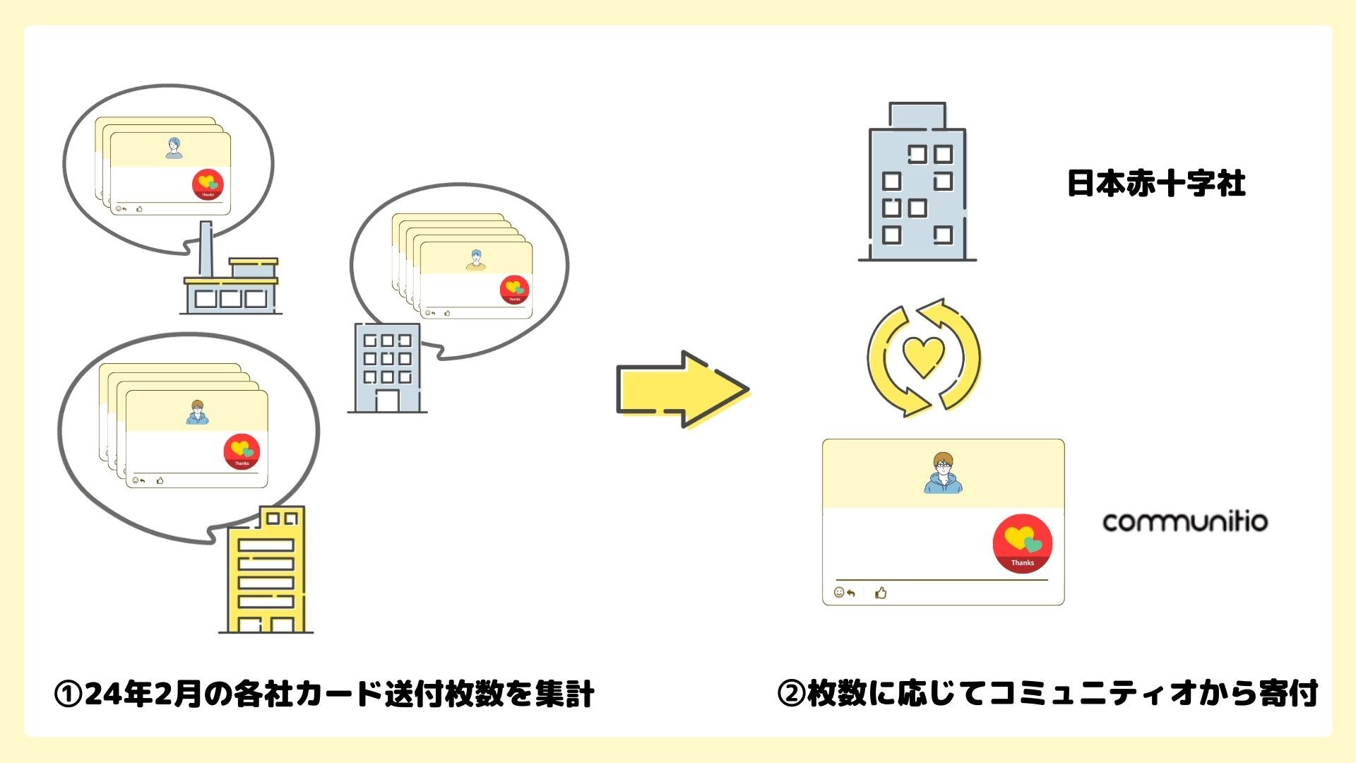 株式会社コミュニティオ(本社:東京都豊島区、代表取締役:嶋田健作、以下「コミュニティオ」)は、2024年2月1日〜29日の期間中「チームステッカー」送付枚数に応じて日本赤十字社を通して寄付をする『チームステッカー 能登半島地震 応援プロジェクト』を実施致しました。本企画には趣旨にご賛同いただいた、複数のユーザー企業様にご参加いただきました。