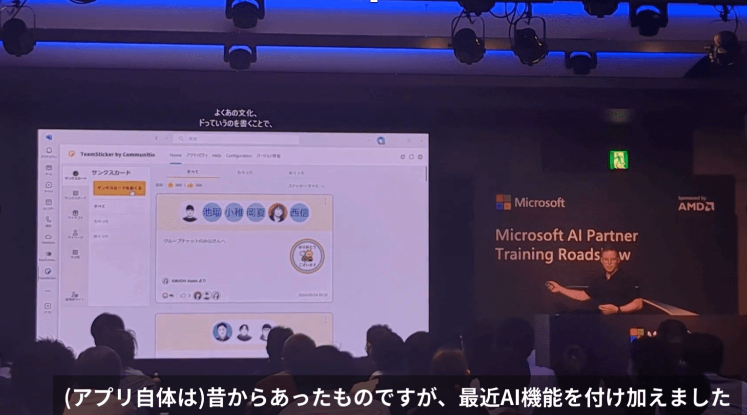 Microsoft AI Partner Training Roadshowにおける「AIアドバイス機能」のデモ紹介の様子