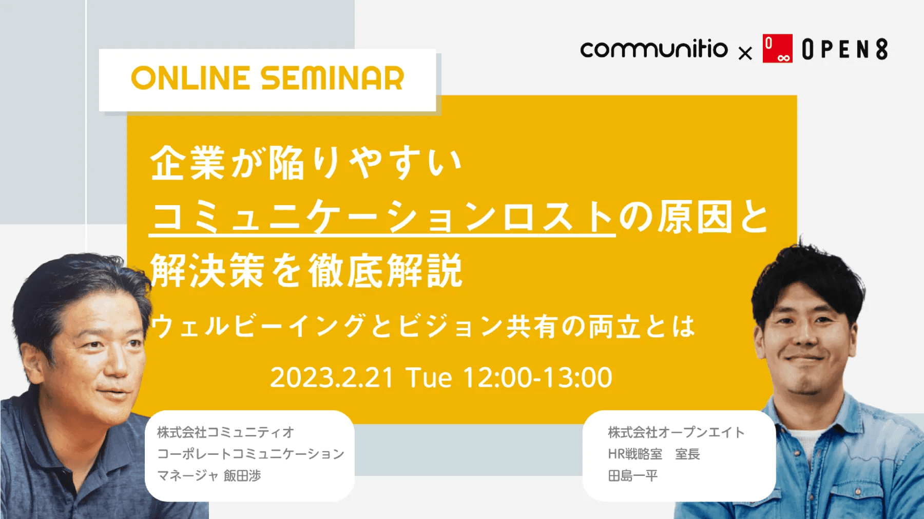 株式会社オープンエイトと「企業が陥りやすいコミュニケーションロストの原因と解決策を徹底解説-ウェルビーイングとビジョン共有の両立とは- 」をテーマに共同セミナーを開催いたします。